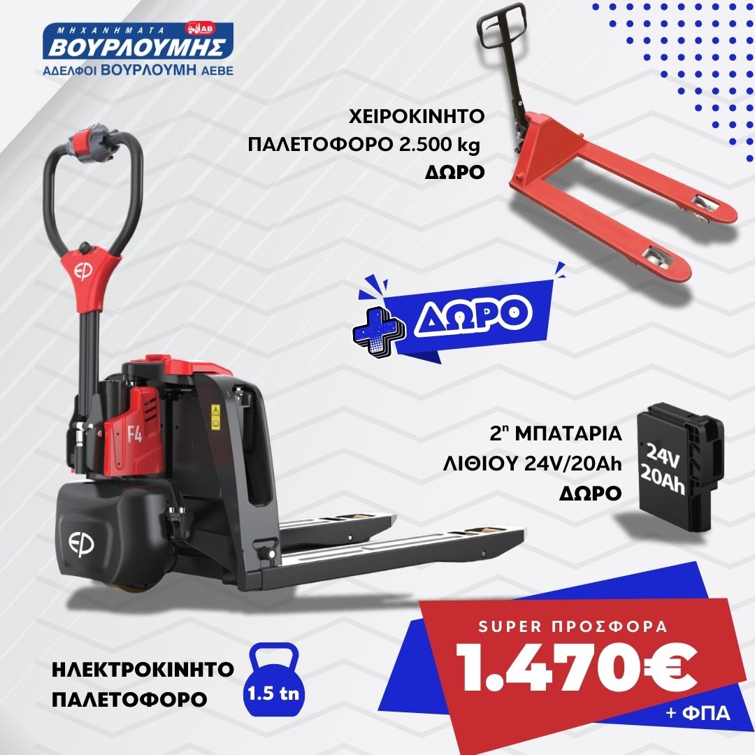 EP Equipment | Ηλεκτρικό παλετοφόρο F4 €1.250,00 -